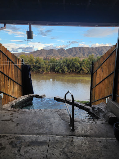 We also reserved a 50 min private soak in the Tierra pool and it was great having that time in private. It overlooks the river and has curtains for privacy. Let me tell you that I was grateful for the misters and overhead shower. The water was at least 105° and you could def feel it. Side. Ite: take a hat and be orepared, the eater is def hot. You might stand it for 20 mins before you get out to cool off.